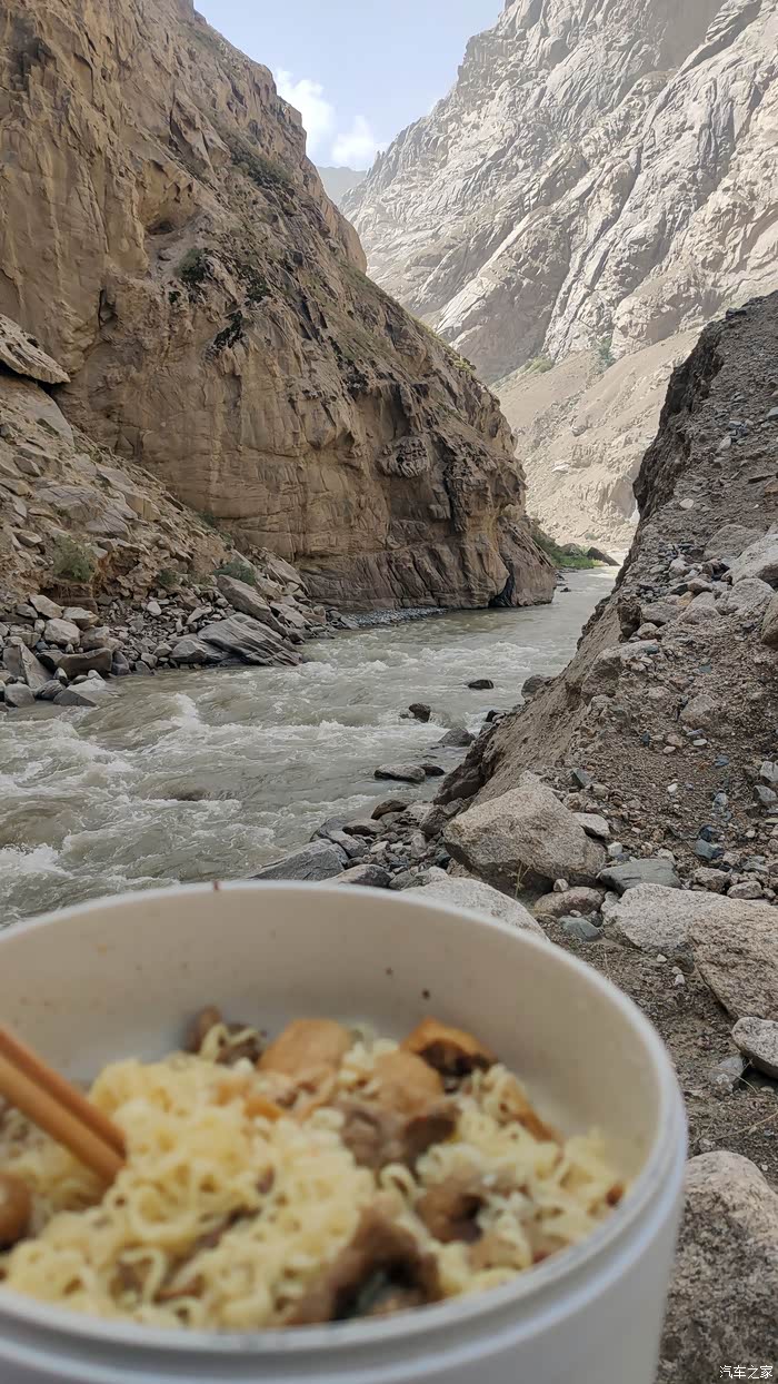 运气不佳,中午时候检查站工作人员吃午饭休息去了,只能排队等了,等的同时我就煮饭吃饭了。货车司机看我在车尾做饭,都过来围观,投下羡慕的目光