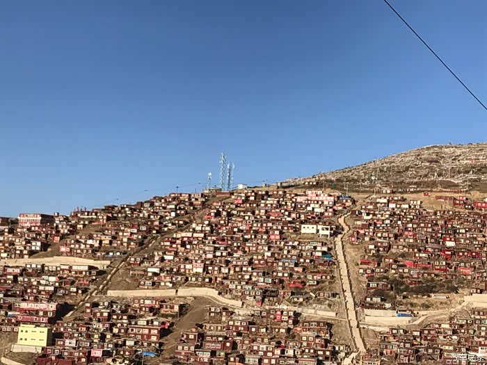 中午的色达,阳光明媚,湛蓝的天空一望无垠。