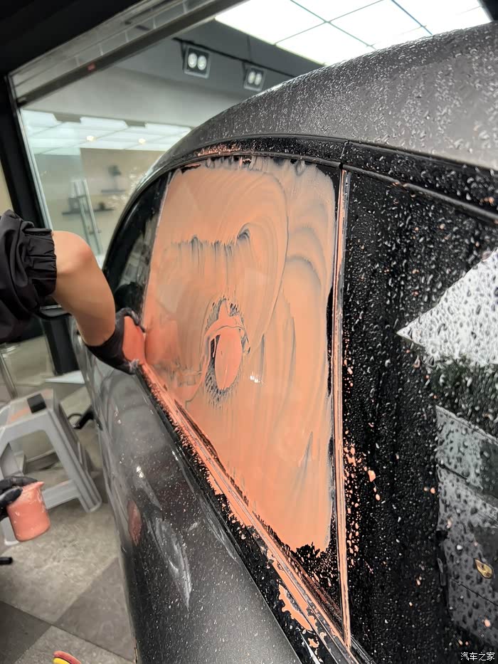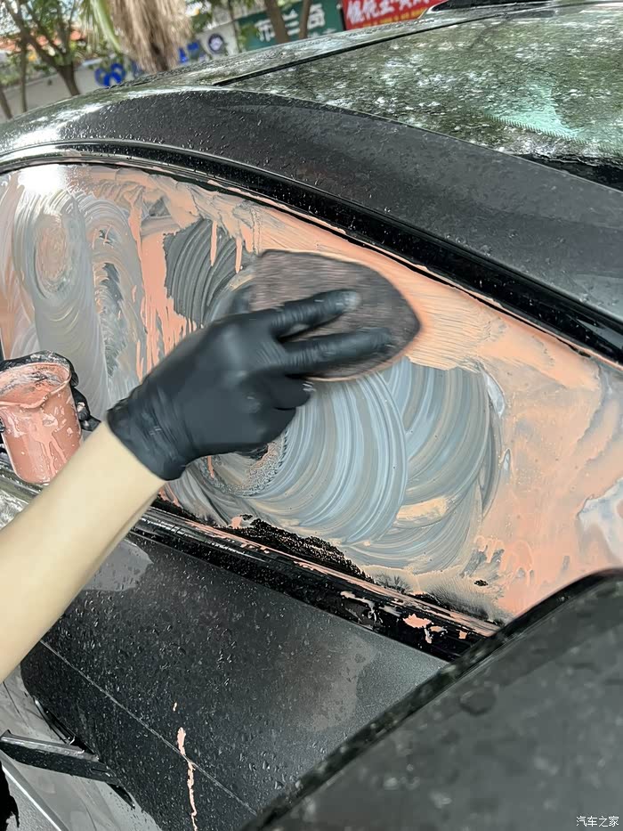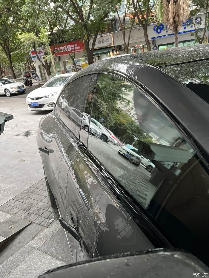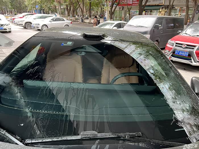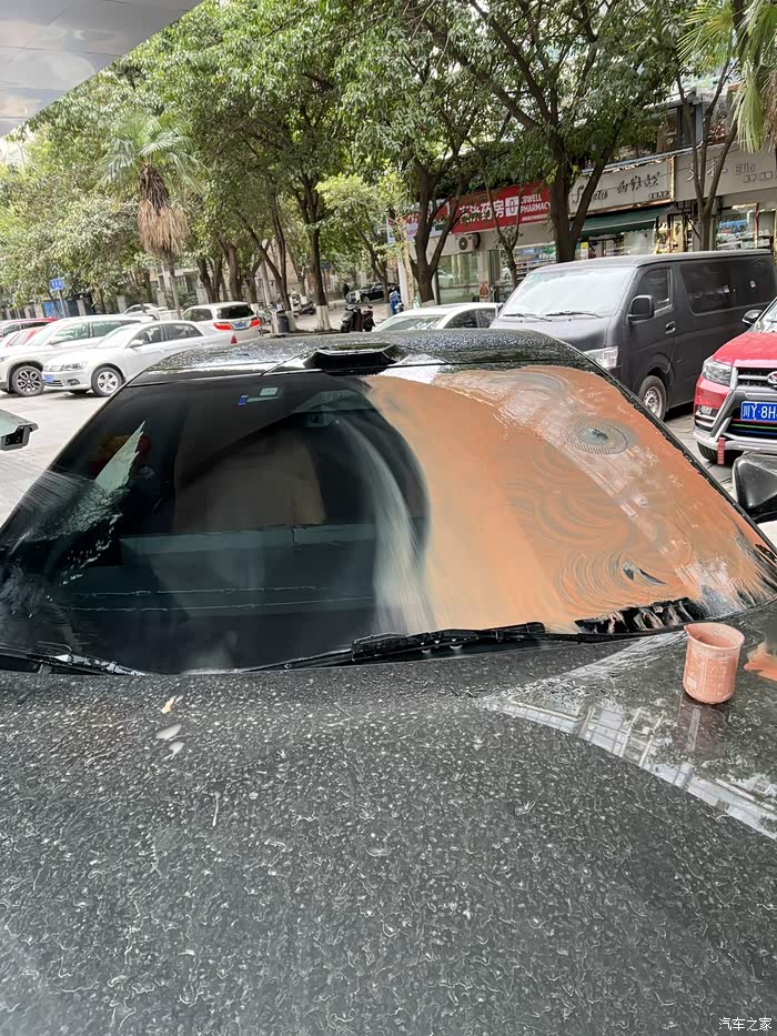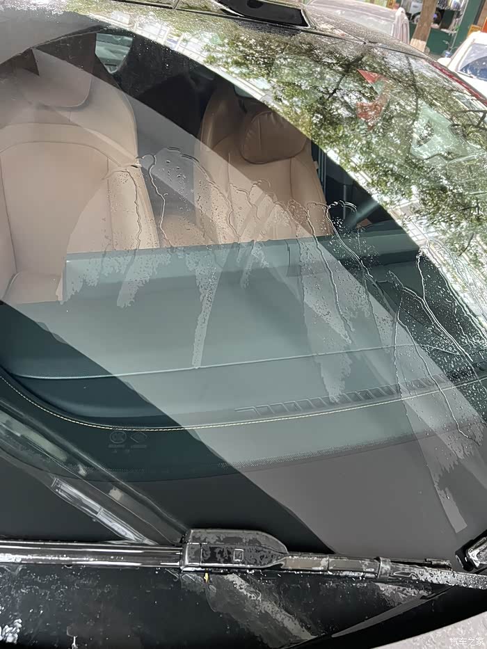 提车快半年了,新车应该路上运输的原因,玻璃上一直有油膜存在。最近成都开始下雨了,白天前档还行,到了晚上一下雨,前档就是厚厚的油膜,雨刮也刮得不是特别干净,在周边找了一家清除玻璃油膜的,保障行车安全。