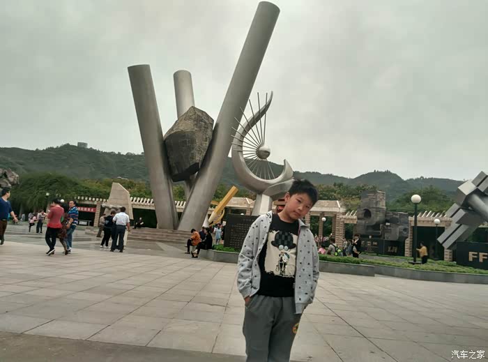 给我们家帅气的小少爷拍了一张照片。这是小浪底风景区的雕塑,好像代表齐心协力移民的样子,看下面石碑介绍该地方搬迁建设总投资950亿元(天文数字啊,不知道我记错没记错,反正喵了一眼,好像是这个数)。
