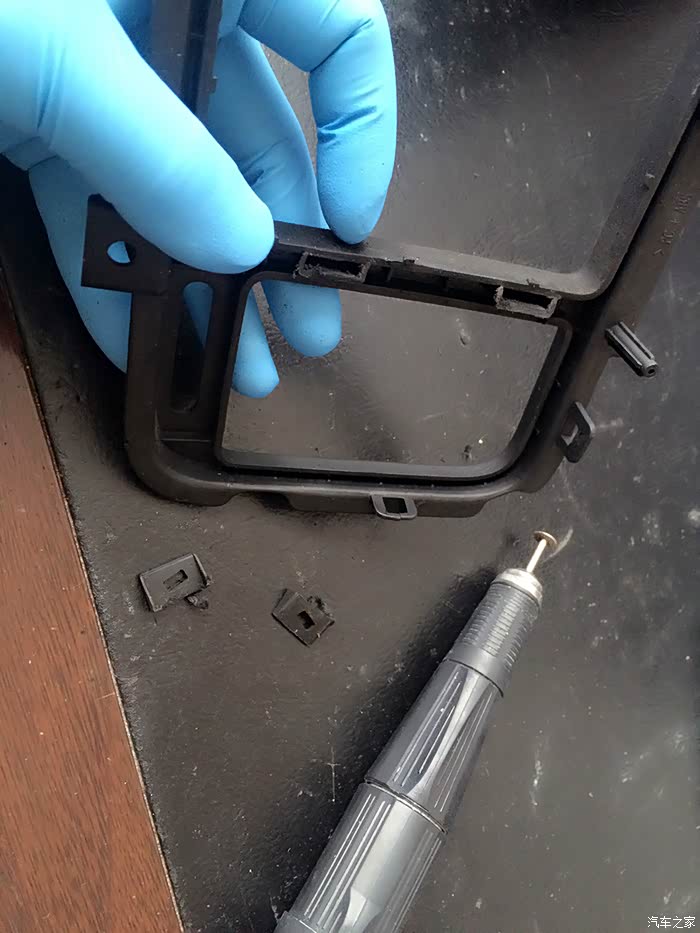 面板背面 空调出风口的卡扣需要先打掉 方便下一步整体扩大面板内径