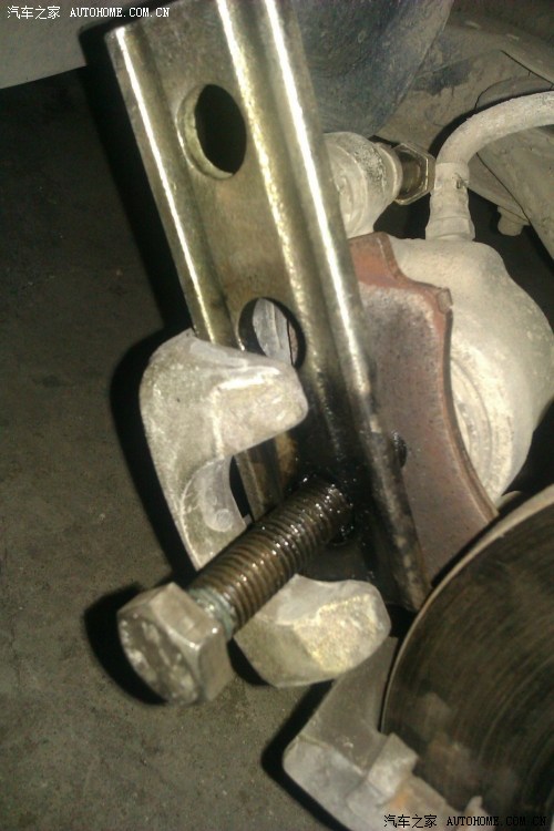 优优的左前刹车片报警了,要我掏钱了。自己换刹车皮首先要做一个专用工具,我是因材而用,随便找了块有孔的铁片做了一个,4块钱就可以了。功能不比汽修厂的少,
