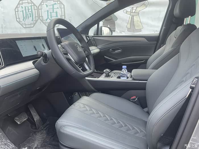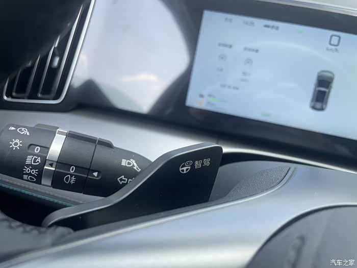 基本上的差距就是多了几个摄像头,尾标换成了蓝色,而且多了一个天神之眼的标志,中控的话多了一个智驾的拨片,前方还多了一个叫三目的摄像头。
