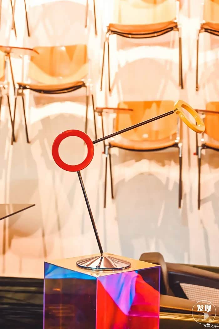 来自意大利家具品牌DE CASTELLI的椅子挂满了一整面墙,与撞色护眼灯混搭,极具现代感