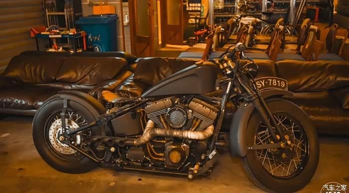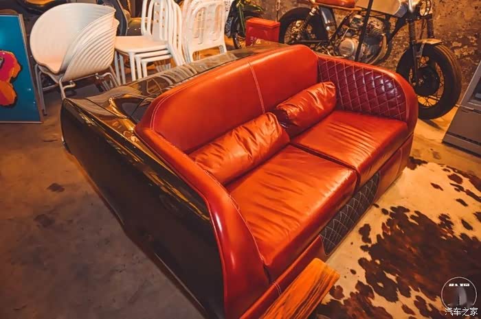 各种摩托车、踏板车、车模,几乎随处可见,甚至连沙发都是跑车改造的!