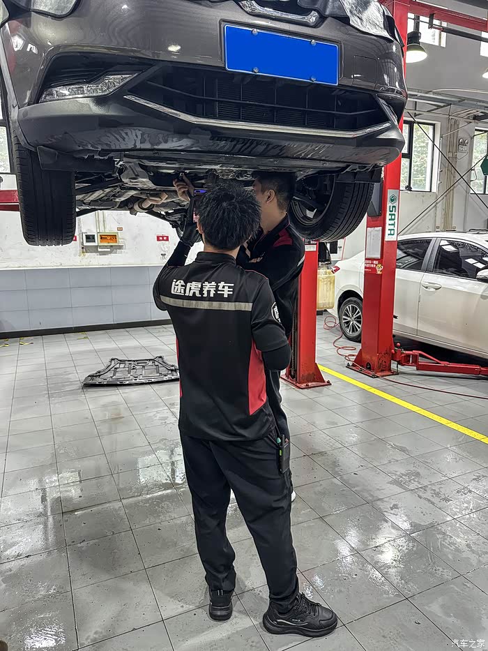 首先就是将车举升起来,拆掉发动机的护板,看看底盘的基本情况,进行一些初步的检查,