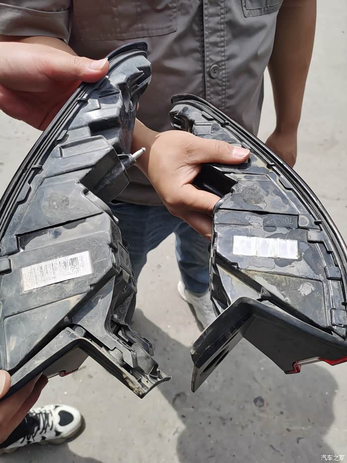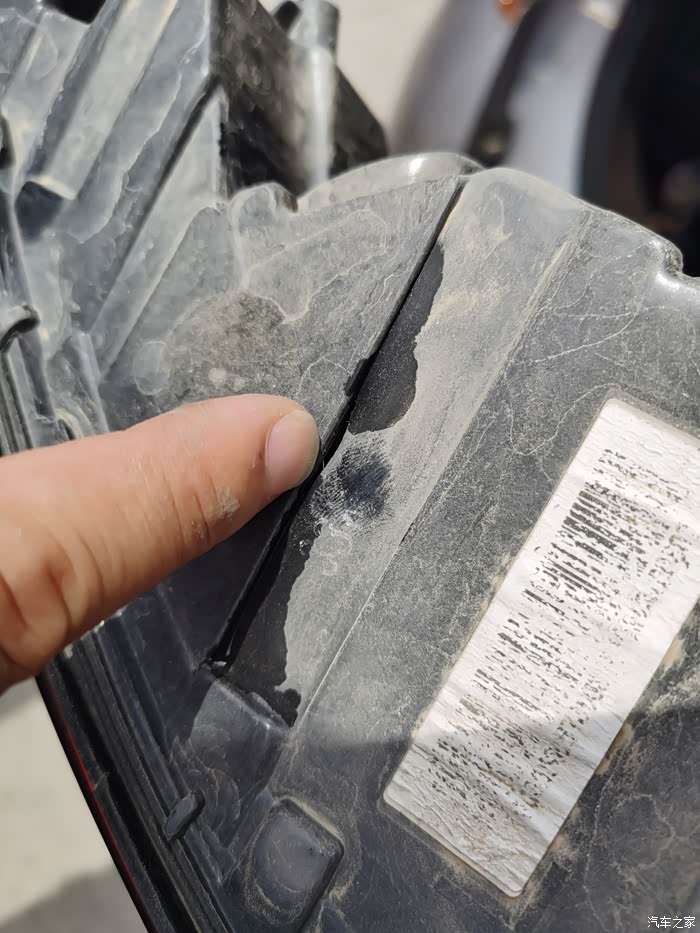 在自行维修过程中发现,进水原因为刹车灯泡上方灯壳经高温烘烤变形所致,应为设计缺陷及材质质量问题。经过投诉平台两次调解,厂方仍然以过质保期为由,最多只承担一只尾灯更换。