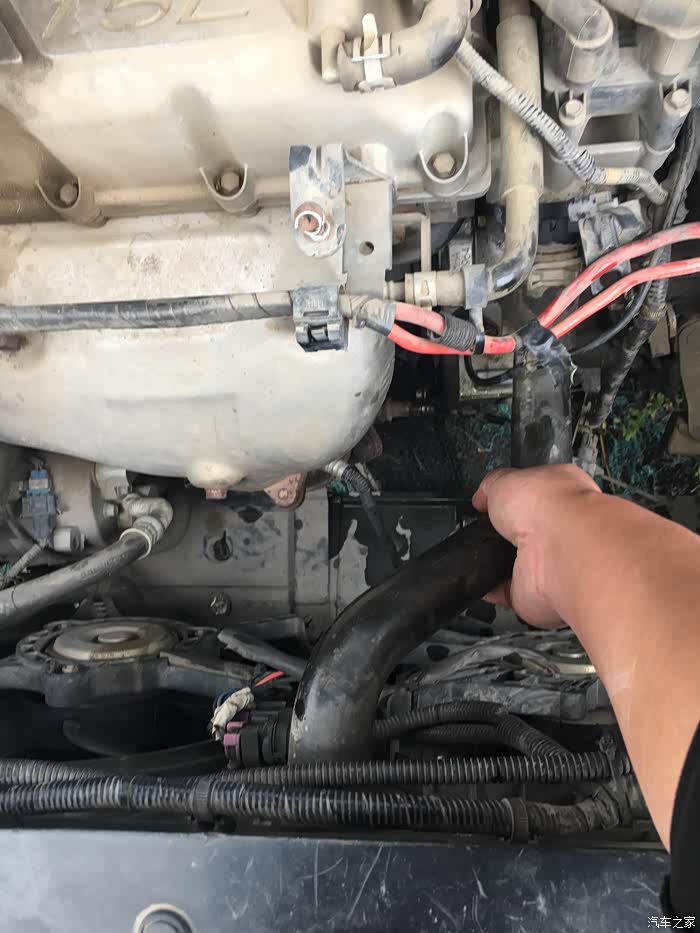 用手摸这个水管,此时这个水管应该是冷的就对了,此时节温器没打开。继续等待,可以观察水温表,水温一直在上升,直到水温快到中线,再摸这个水管,热的,那就说明节温器打开了!继续踩着油门稳定2000转,排气,之后水壶冷却液不够话继续添加。然后看看管路有没有漏的,没有就下一步