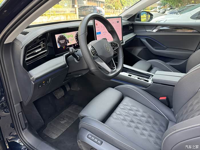 进入车内,全新迈腾的内饰更是展现出了高档的品质。精致的缝线工艺、高品质的材料运用,每一处细节都经过精心雕琢。座椅的舒适度和支撑性也堪称一流,让驾驶者和乘客在长途行驶中也能保持良好的状态。相比之下,一些竞品的内饰要么材质不够精良,给人一种廉价感;要么在人体工程学设计上存在缺陷,影响了乘坐体验。