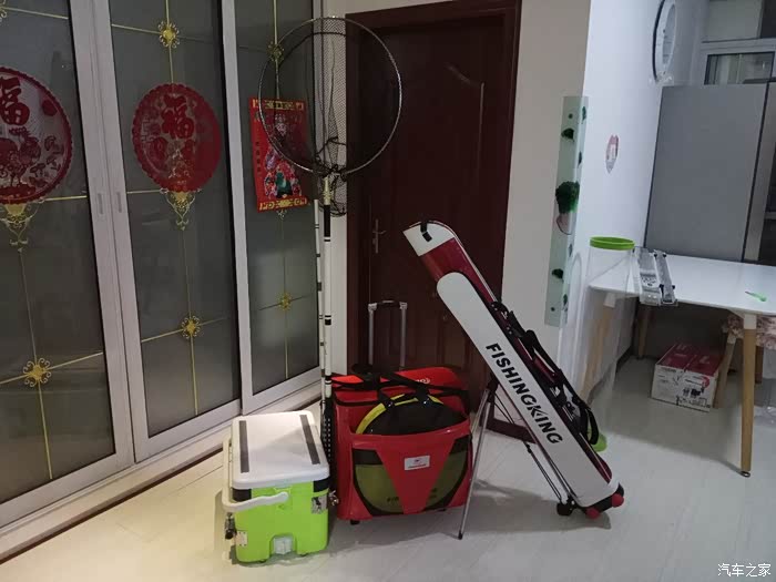 钓箱、鱼护、竿包、钓竿、抄网、拉杆箱,我的钓鱼装备还算齐全吧。楼下的车库里还有一大堆,钓台、钓椅、钓伞等等。只是一年到头,就是没钓到多少鱼。哈哈!开心就好!