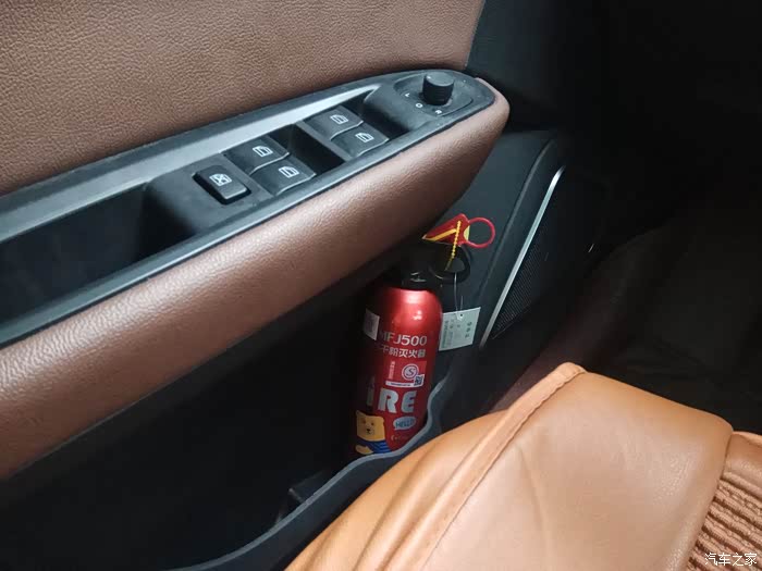 灭火器的大小如同一瓶饮料,放在右车门储物盒中最为合适,万一发生火险,随手就能拿起使用。有很多车友把灭火器放在后备箱中,我觉得是非常不可取的,要知道“水火无情,分秒必争”。希望各位车友,为了你的爱车,为了你自己,为了你的家人,为车买个灭火器吧!安全第一,有备无患。更希望大家永远也用不上它!