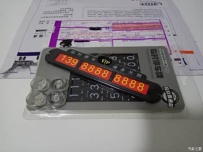 我对车的相关知识了解很少,当初买车的目的就是为了钓鱼,只会开车,对于维修、保养、改装什么的一窍不通。小7陪着我已经有一年半的时间了,除了给车买了后备箱垫外和行车记录仪外,再没添置任何东西,坐垫、脚垫、贴膜还是随车送的。这次“双十一”为车买了停车牌和灭火器。以前用的是那种带小广告的手写停车牌,不仅看起来不雅观,而且电话号码需要手写,太阳晒后容易掉色,所以买了个吸盘式的塑料停车牌。