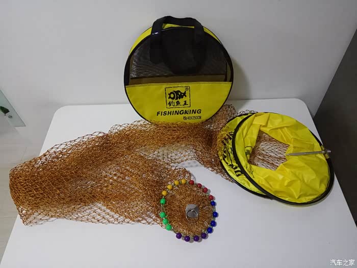 这个鱼护是用网球拍线编织的,既结实又耐用,颜色也很亮丽。