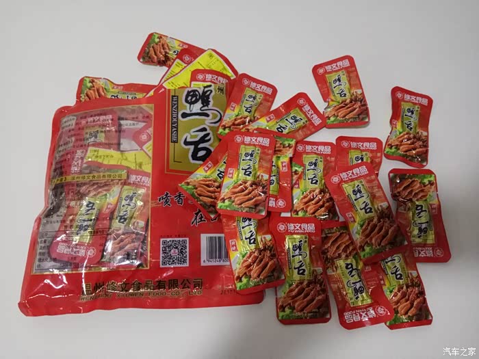 给老婆买的鸭舌,她喜欢吃这种小食品。我才吃了一个就后悔了,早知道这种鸭舌这么好吃,给老婆再多买几袋好了。