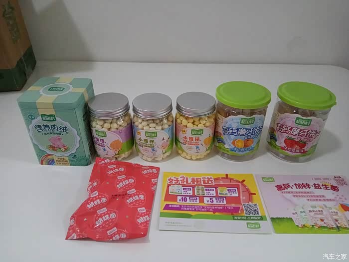 给我家宝宝买的高钙磨牙饼干、营养肉绒、蝴蝶面、小馒仔。