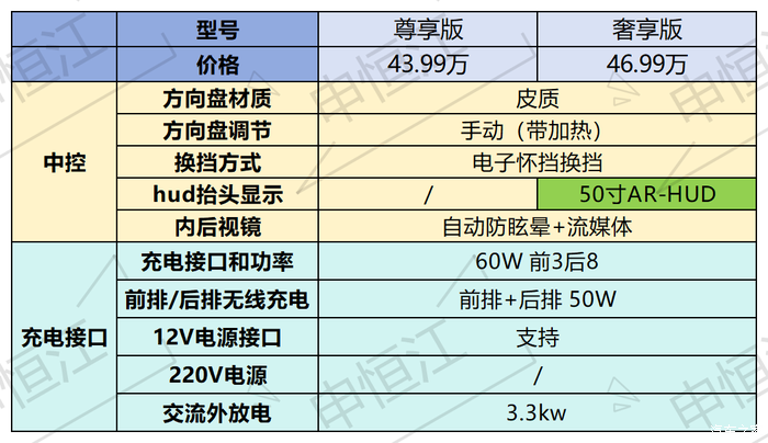 至境世家一共两个配置,尊享版43.99万元、奢享版46.99万元,插混动力。