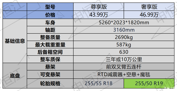 基本算是非常主流的配置,除了整车质保年限有点低外,没啥问题。两个配置,在底盘方面都是一视同仁,没有任何区别对待,至于轮毂规格都是255,除了尺寸不一样,还能接受,区别不是太大。