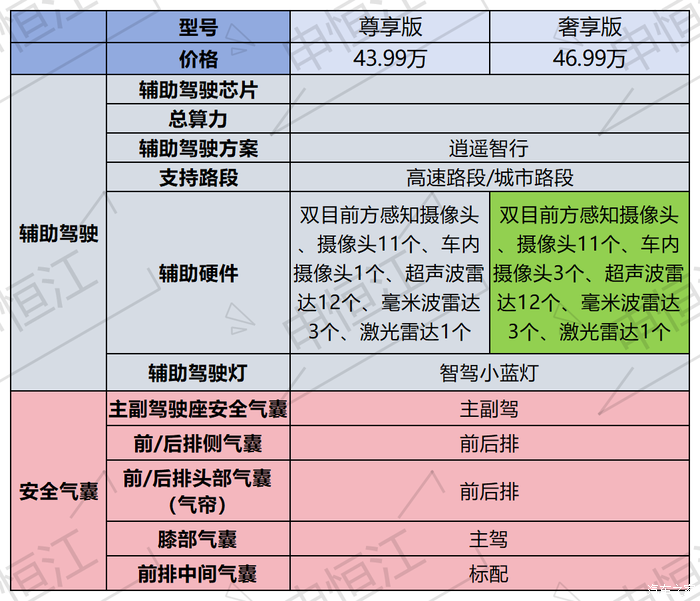 1,智驾方案是和momenta公司进行合作的,支持高速路段和城市路段,硬件配置方面也是一个主流配置,高配和低配只是在车内摄像头方面有区别,高配是三个车内摄像头、低配只有一个,都有激光雷达和小蓝灯。