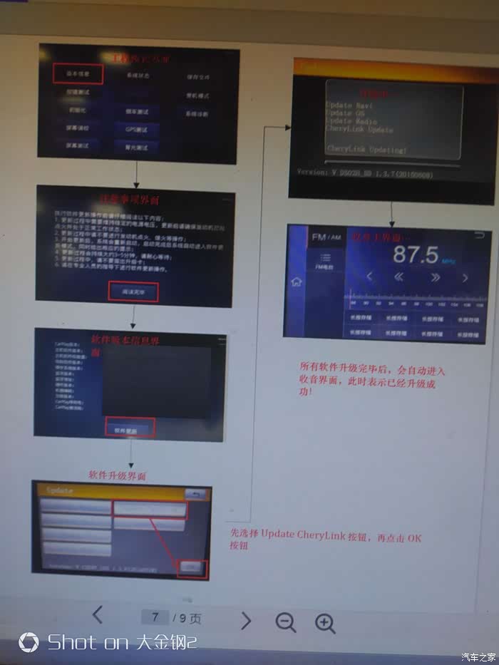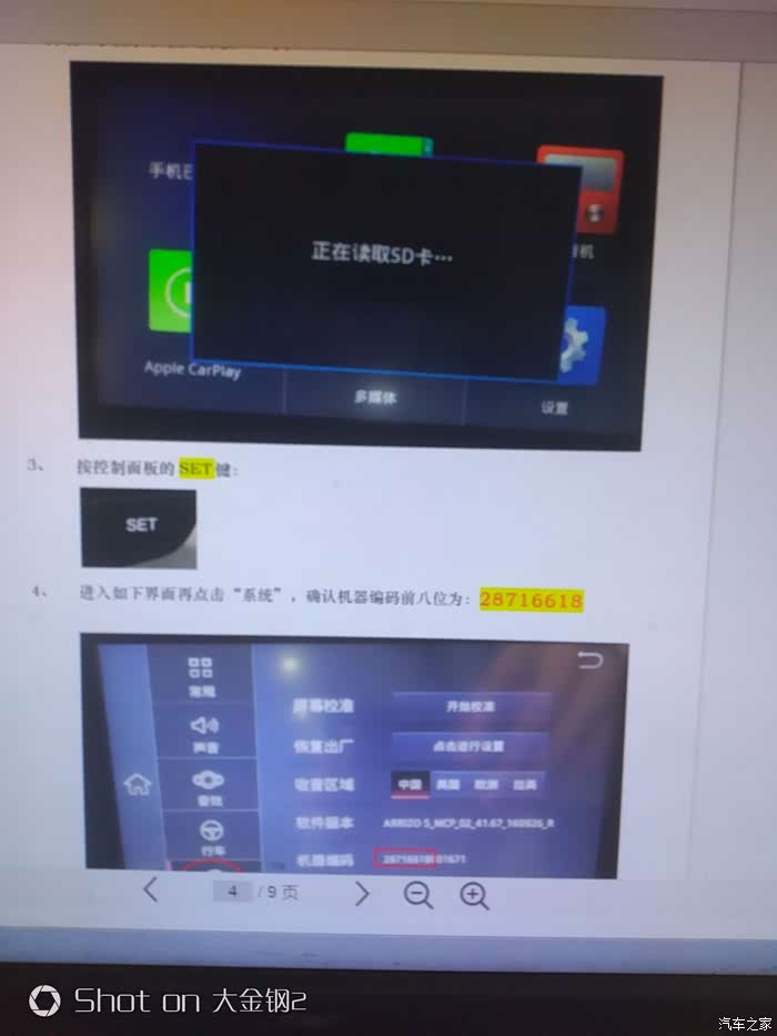 提取码:2tpe 下载完后,把文件解压到SD卡上,里面一共是4个文件,(切记要解压到SD卡上),然后把SD卡插入车机,车子开钥匙,点火,然后按照图片顺序操作。 图片2为文字教程,图片3为图片教程。图片4为注意事项,请大家看完整个贴子再升级。 最后想说升级要谨慎,本人只提供文件跟教程,不承担任务责任。