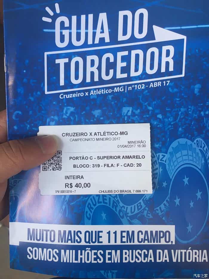 这个是上次出差在当地看了一场同城德比战的球票,比赛正是在米内罗竞技场举行的(巴西队和斯科拉里的伤心地):克鲁塞罗VS米内罗竞技,最后克鲁塞罗赢了。