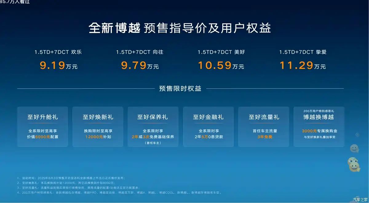新款吉利博越开启预售,共推出4款车型,预售价为9.19万-11.29万元。作为中期改款车型,此次新车主要针对外观、内饰进行调整。同时新车全系标配Flyme Auto座舱系统,动力依旧搭载1.5T+7DCT的组合。新款吉利博越开启预售 您下定吗?欢迎您在评论区留下您的看法