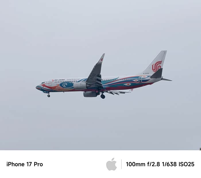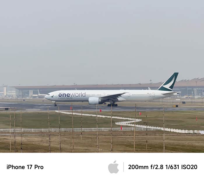 大家好,我是Blue_Impules,今年苹果发布了新手机iPhone 17系列,也是到了我三年更换手机的周期时候。入了17 Pro,说起这次在拍摄方面最大的升级莫过于三摄4800万像素以及长焦性能的突破,8倍长焦是通过4800万像素长焦镜头(传感器尺寸提升56%)与AI算法,实现等效200mm焦段的超清成像。趁着国庆假期,跑了趟PEK 36L、36R试试4倍、8倍长焦拍飞机的出片效果,遗憾拍摄当天天气不给力,下面就给大家分享一下“水泥天”的直出效果。