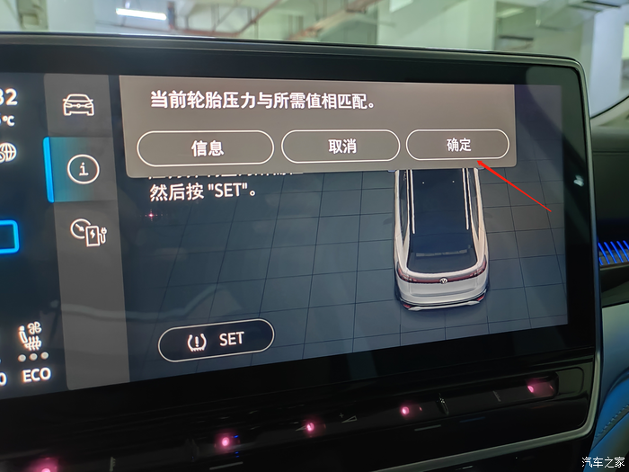 要矫正胎压,就点击SET,然后确定。