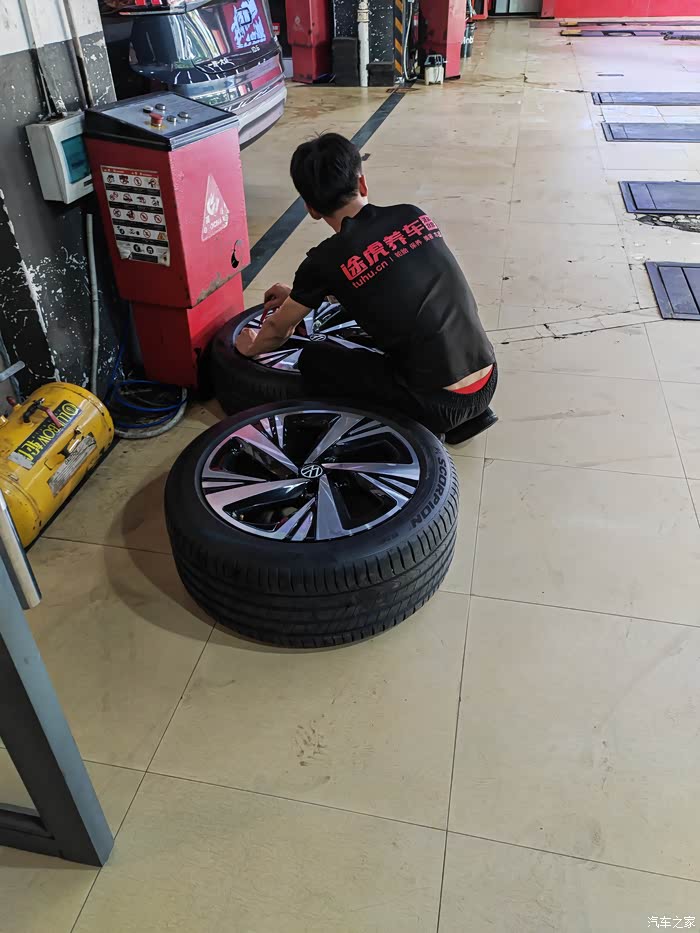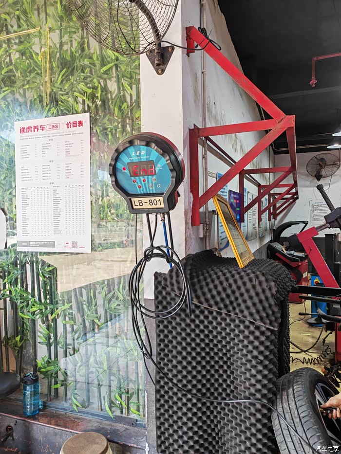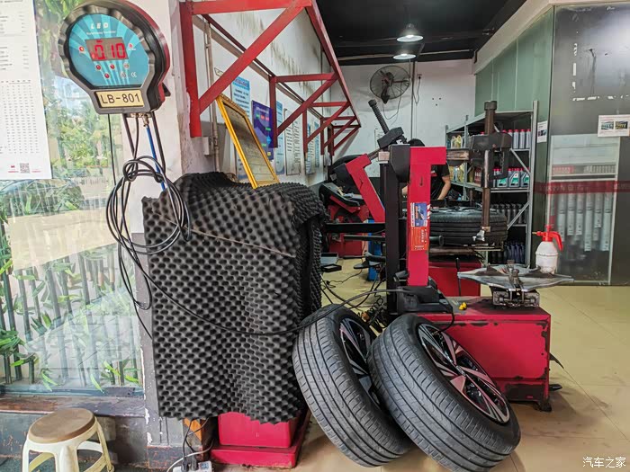 刚开始装胎压显示装置时,四个轮胎被卸了。