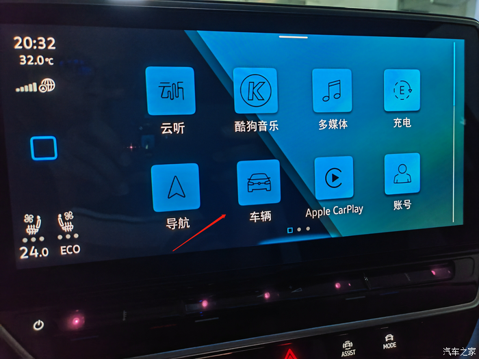 想找到胎压设置界面,先点击车机界面车辆。