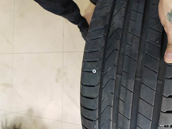 仔细一看,处女钉子,但是刚好在轮胎的缝隙中,没什么大碍。