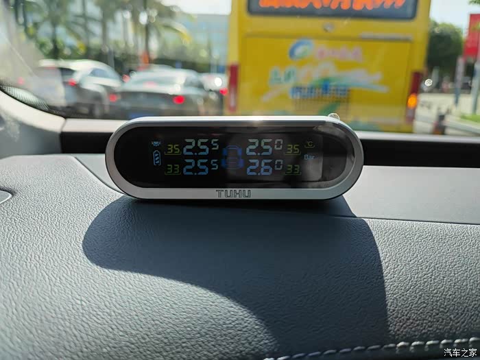 刚安装好时的胎压显示装置,太阳能的,有太阳就可以充电。
