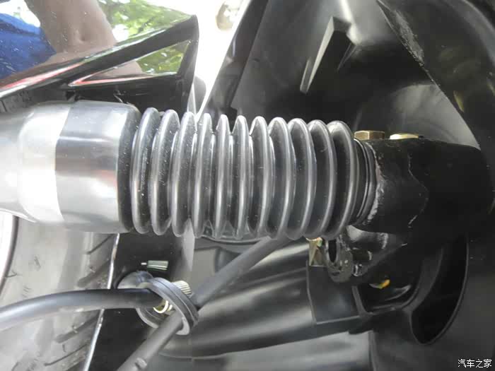 前面的减震器被胶套包裹起来,可见做工和厂家的细心程度