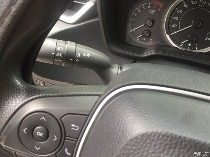 首先,自动调节远近光按钮就在方向盘下方左侧左数第二个按钮。