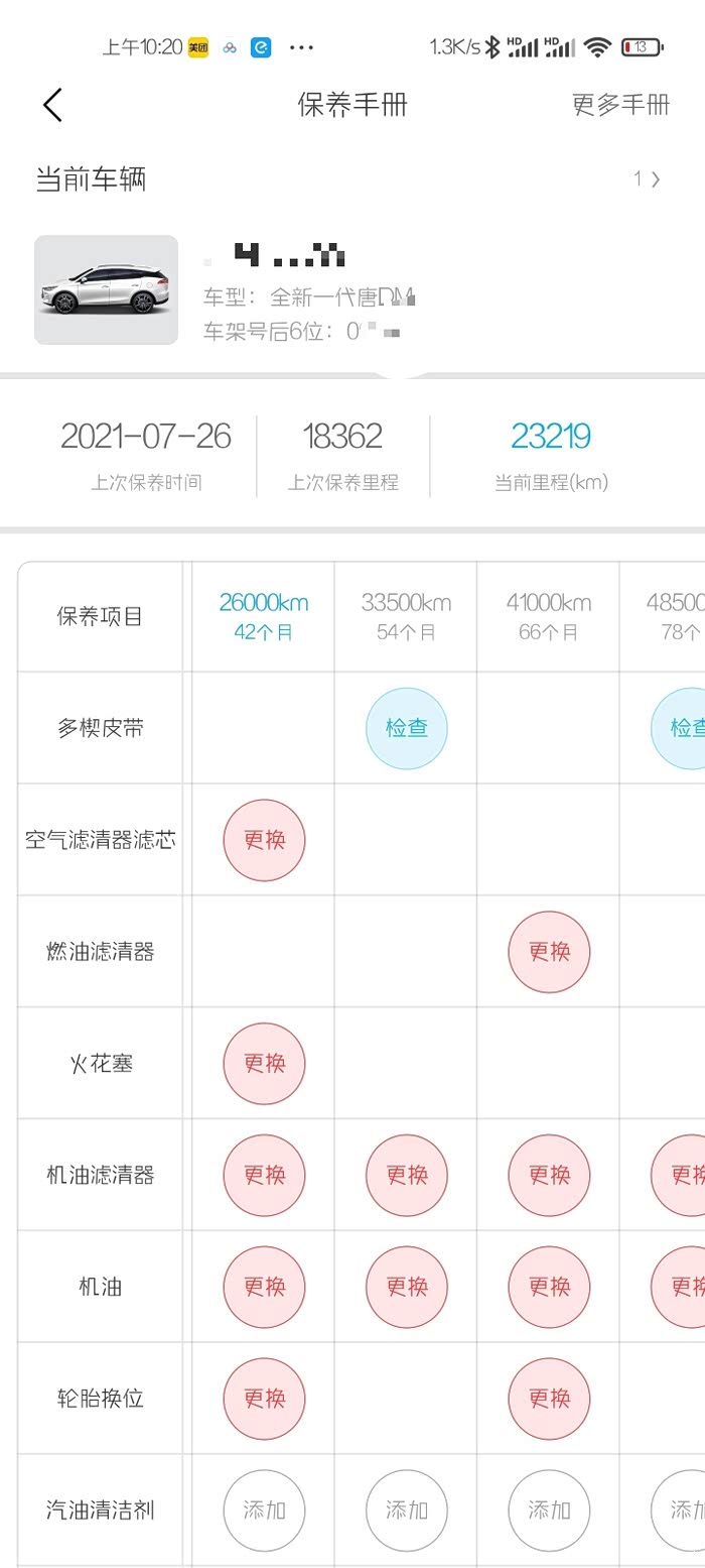目前为止车子没出过任何问题,保养过两次,这个我有点难受,因为比亚迪的电子保养手册和纸质的有所更新,他不再区分ec和hev里程,所以我首保hev就跑了一千多,然后8个月以后hev跑了五千多的情况下这两次都更换了机油机滤,我是觉得有些浪费,但是吧,保养又是有必要的,毕竟用纯电跑了这么多,其他位置也需要检查一下,后续再去保养我还是跟他售后多沟通吧,看看能不能按照实际使用情况更换机油。