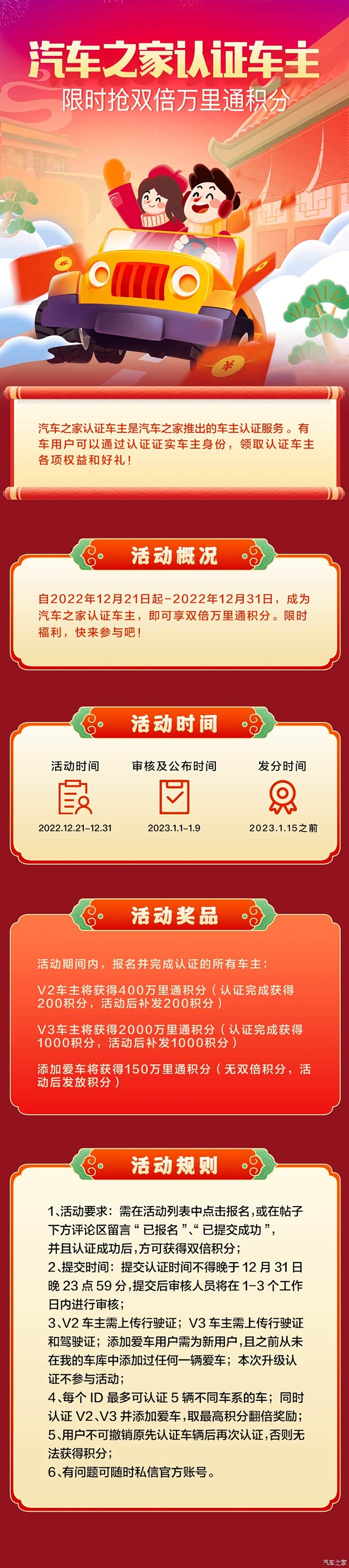 【认证车主】年末福利来袭!认证享双倍万里通积分!