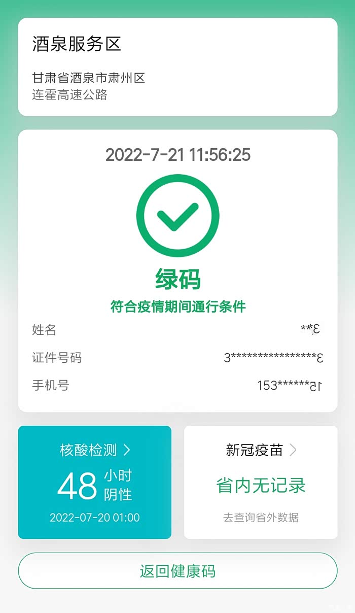 在酒泉服务区也显示符合通行条件