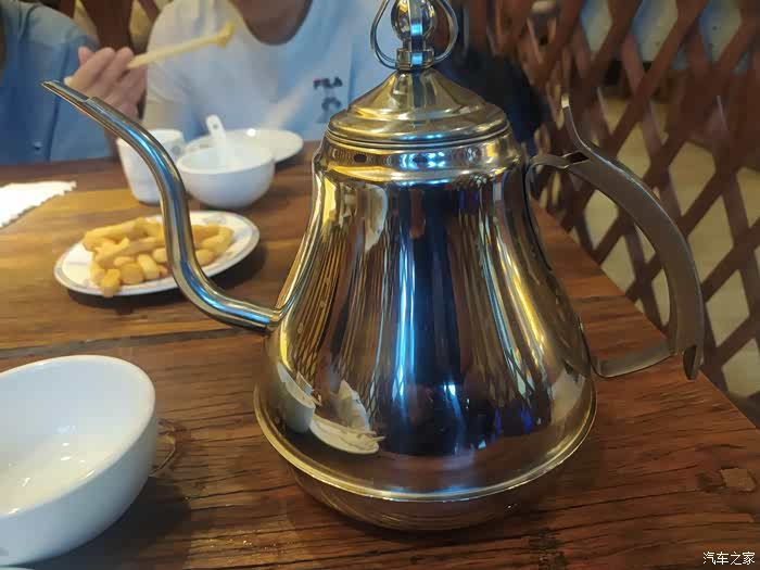 安顿好住宿的地方,去附近的饭店吃晚饭,这一大壶奶茶口味不错