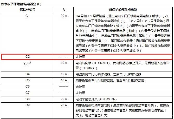 原车C2号保险丝是未使用的