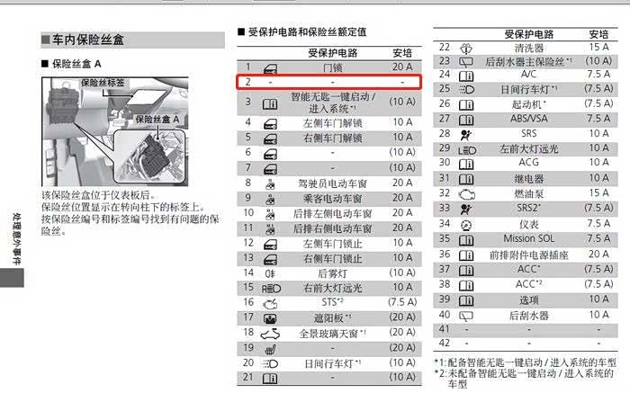 车辆说明书中的室内保险丝盒