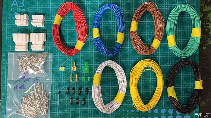 线材当然也使用原车住友电装、矢崎的日标0.5sq(平方毫米)汽车专用阻燃线