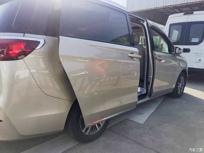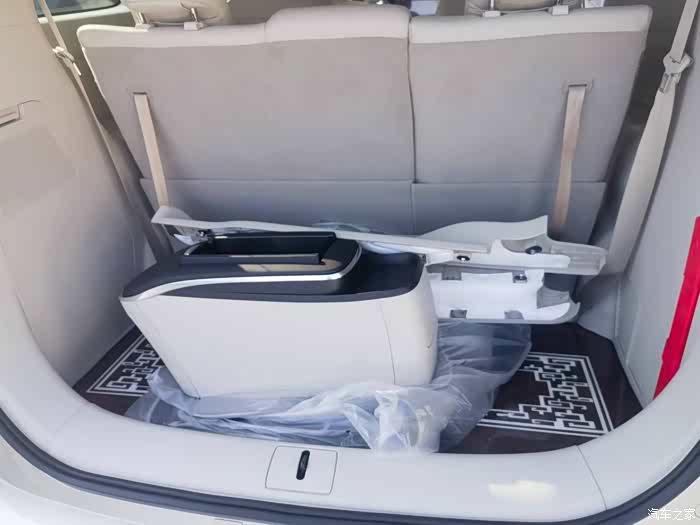 内部空间方面,中控的做工与设计非常符合一台商务用途MPV的定位,足够豪华,足够舒适。大连屏的使用虽说已经不稀奇了,但无疑能增加豪华度。低配版车型的座椅为织物材质,从次低配开始提供真皮座椅不过在这真心吐槽两句,楼主买的就是入门版的,随说就最低配但是毕竟上路三十好几万的车子没有配皮座椅,这台车是一家老小一起出门特别有小孩卫生真的很难打理后期只能自己改装(皮椅和木地板),第二排是两个独立座椅,是整车乘坐最舒适的位置,头部空间和腿部空间无法用几拳几指来形容。第三排则稍逊一筹,头部和腿部空间依然不错,一拳左右,但坐姿姿不够舒适,填充物也不如第二排来得充足,中间没有扶手很蹩脚,后期自己升级这个扶手带冰箱功能,夏天可以冰镇几瓶饮料还挺舒服.
