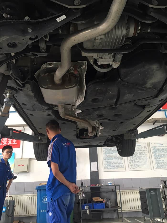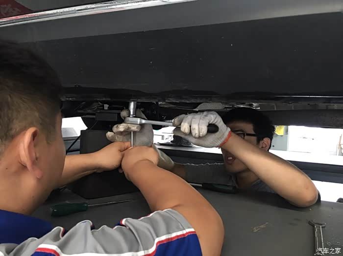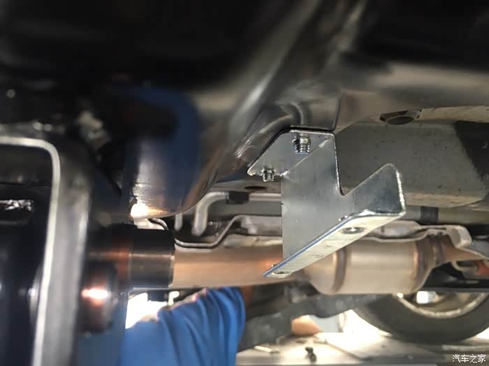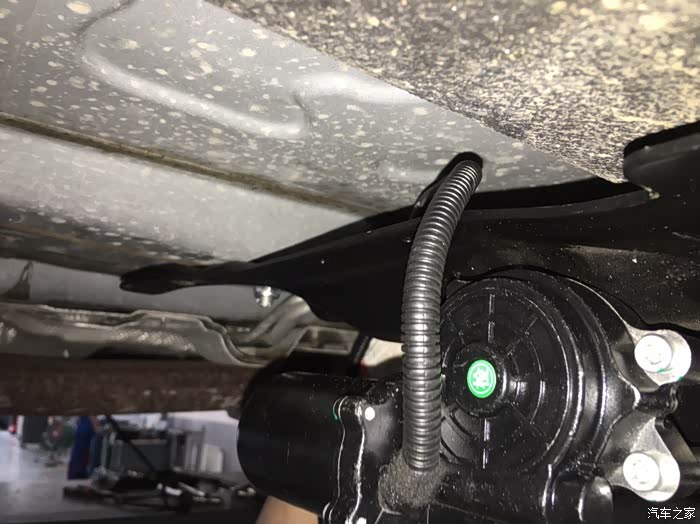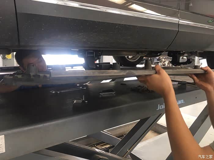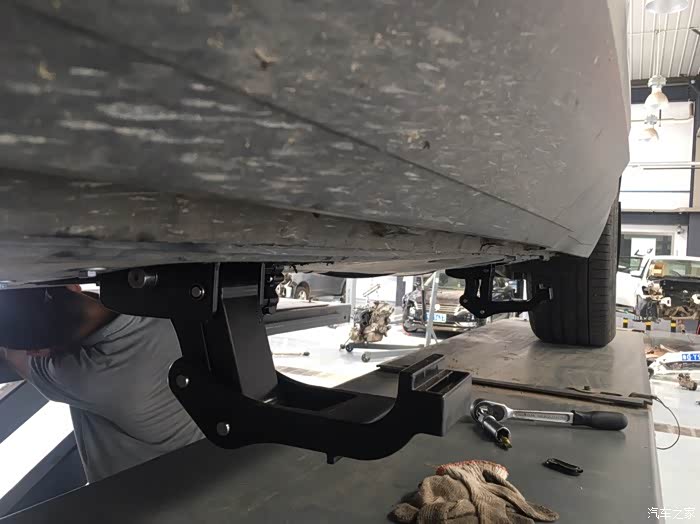 一开始本来打算用龙门举升机,但是考虑到可能对安装有阻碍还是更换了举升机,这是我拍的车底照片,护板的位置清晰可见