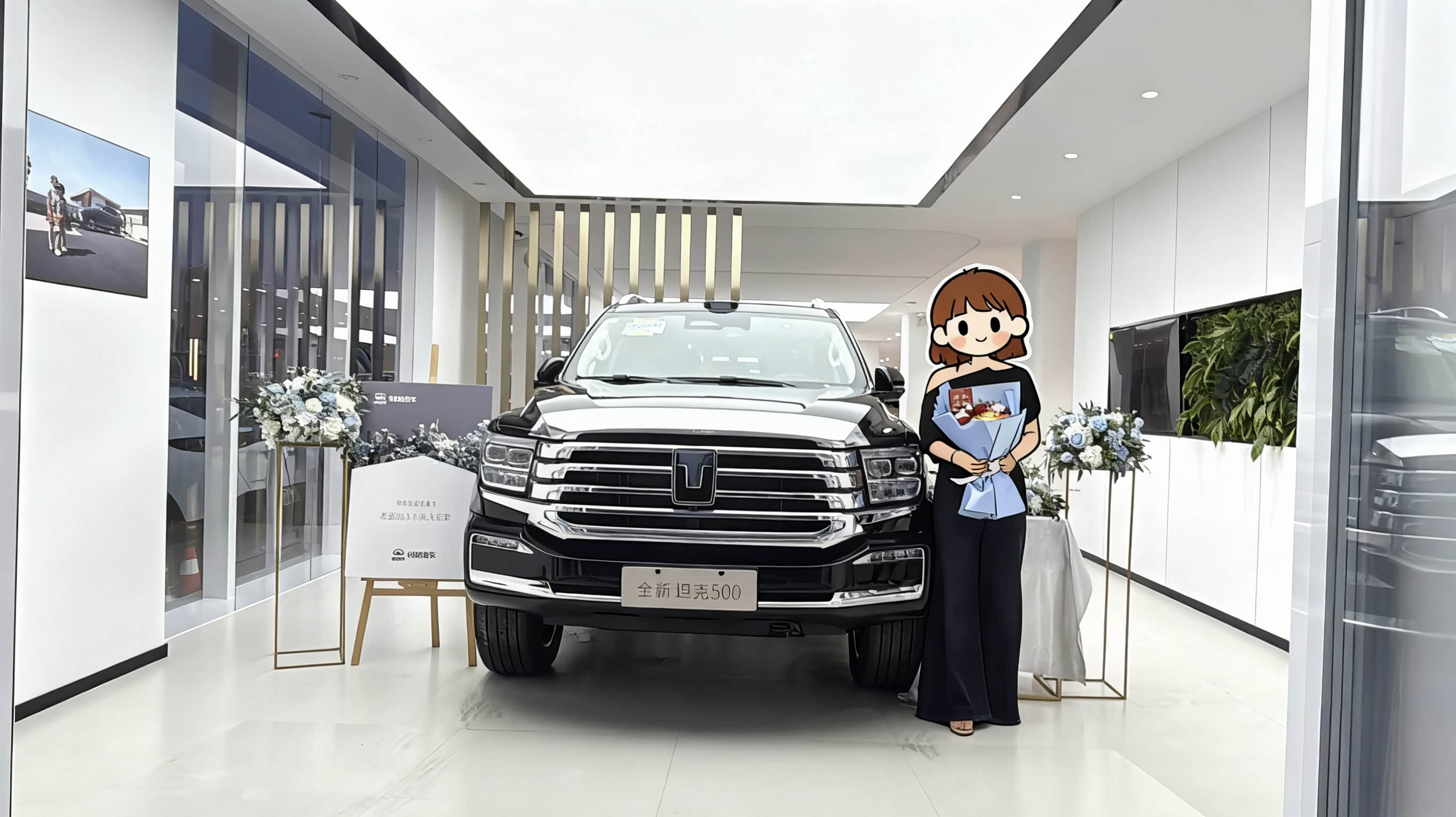 上周六不到九点就往4S店冲——等了一个月的坦克500,就停在交车区最显眼的位置。亮黑色车身没一点花哨,线条在灯光下棱棱分明,比看车时更显沉稳,忍不住绕着转了三圈。
