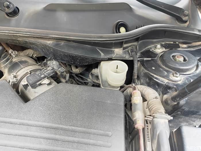 按惯例,先掀开刹车油壶盖。