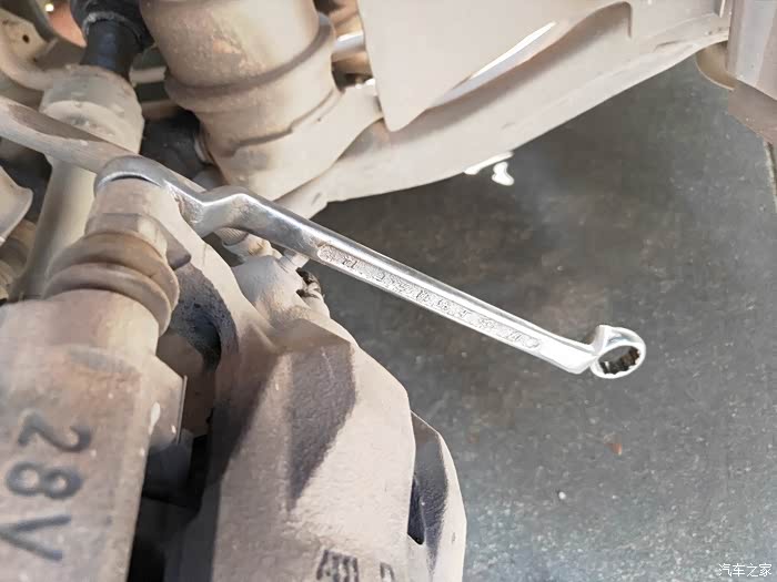 用14号梅花拆除刹车钳螺丝。
