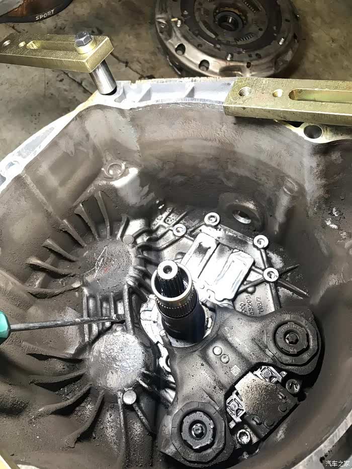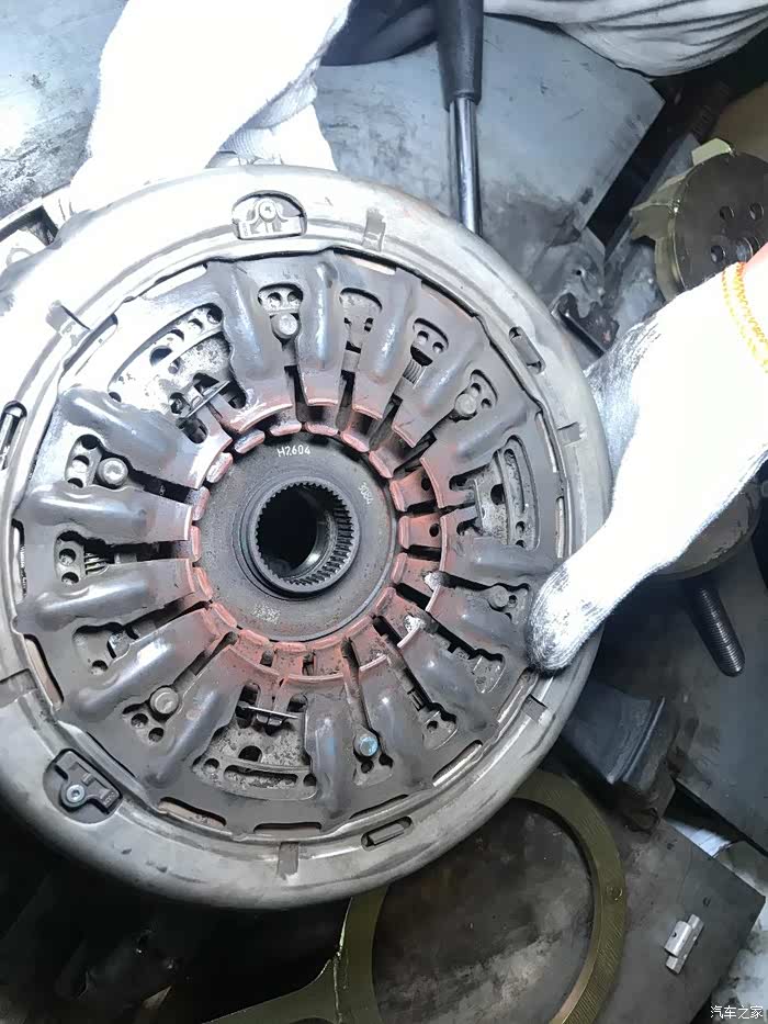 离合器总成照片,这个离合器每次拆装的时候都需要专用工具进行压解和释放 比较麻烦这个专用工具价格还很贵 我们通过4S店借出工具连夜进行复制数据自己加工一套 为了修好这个变速箱我们首先要使用工具