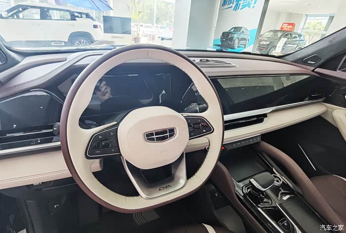 内饰方面,星越L也同样充满豪华,横向贯穿中控的“米级”MAX大屏,三联互动,内置丰富的生态APP,屏幕显示内容与显示效果都十分喜人,可以让副驾驶在旅途中不再单调、无聊,独特的三指飞屏技术,可以把中控导航线路投射至液晶仪表盘中显示!另外中控台采用双拼色设计,能触摸到的地方都做了软包设计,使用麂皮面料珍珠缝线,再配以座舱72色自定义氛围灯、12节向电动座椅等让星越L由内向外的散发出豪华感与舒适感。