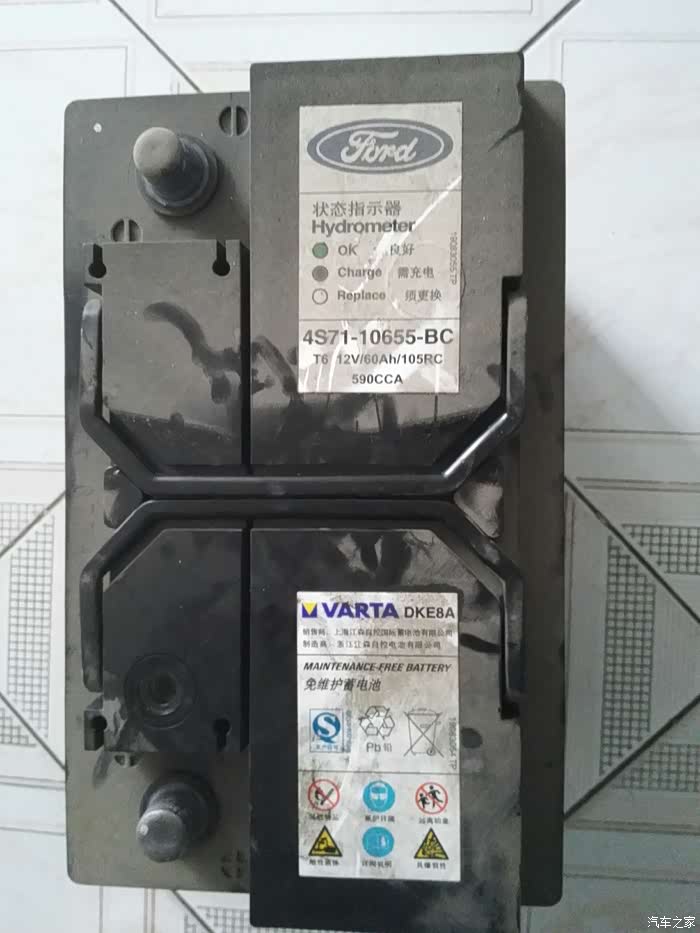 今天早上发现冷却液到MIN一下3公分左右,就去4S店加点,顺便27500做个保养。之前买的6次基础保养套餐,300不到一次,还是蛮划算的。4S看了我的里程和年限,让我换刹车油,转向助力油,变速箱油。一年前保养的时候四s就叫我换变速箱油我没理他,但今天看了看颜色还是蛮浅的。而且想想换个变速箱好几万还是花点钱换变速箱油吧。但是因为送的工时券一次只能用一百。所以今天先换了刹车油。机修工拆下后轮用一个东西堵住了口,反复踩刹车,再把堵住管口的东西拿掉一边加刹车油一边踩刹车。还是蛮认真的。 在这个过程中,我让他帮我看看电瓶她用机器一量,上面显示电瓶状态是不良,而且观察口已经是黑色,建议我换电瓶。然后我到网上一查电瓶的使用期限是三年,换一次600左右。赶上正好有活动,四百六,免工时费,瓦尔塔。而且这个车老婆开的多。怕把她扔在路上,所以就决定换电瓶。