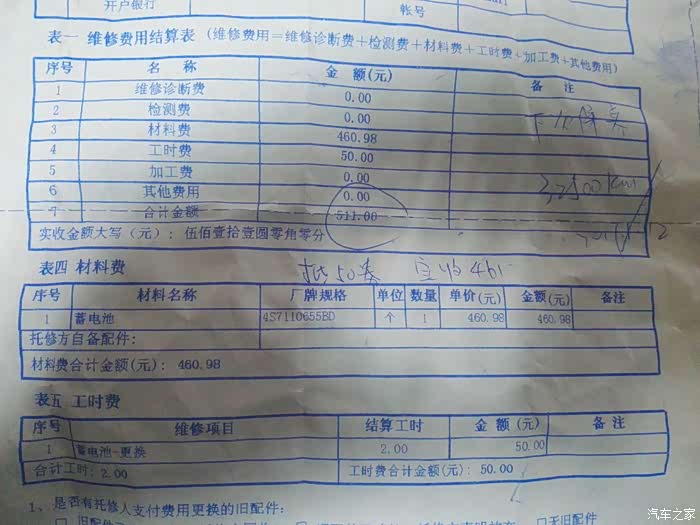 换刹车油用了一百工时券,付了七十块现金。所以说这次总共付了531。