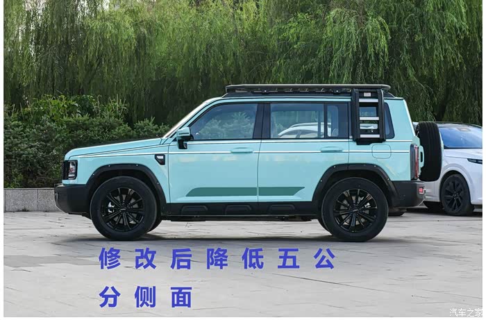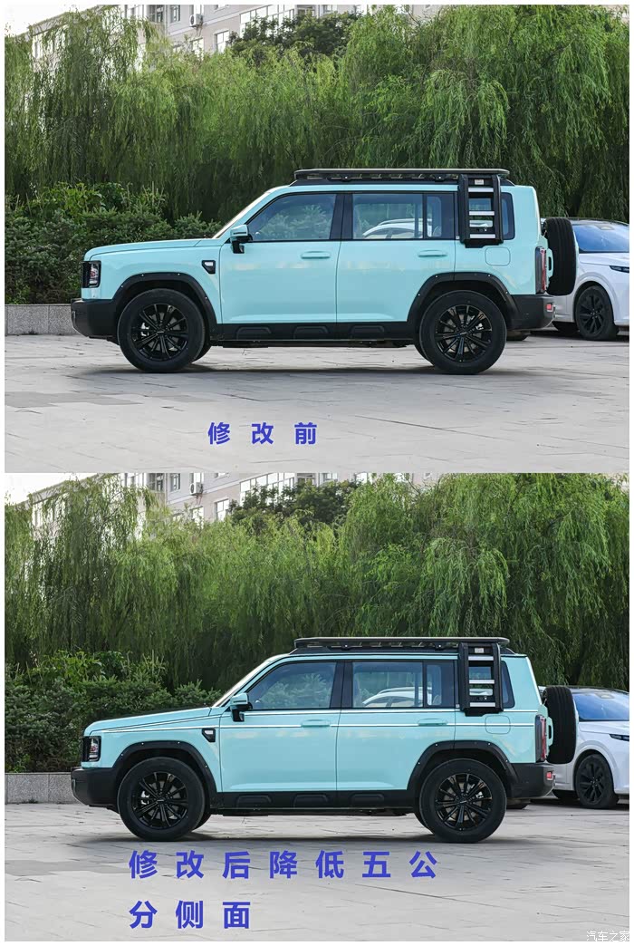 我的此次哈佛猛龙修改车头只降低了五公分,从侧面观察会更直观,正面高度降低差异较小,本人绘图